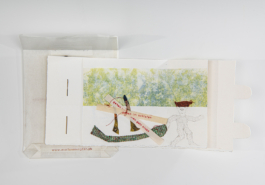 Ins Blaue Fliegen, 2024, Leporello, Tiefdruck/Materialdruck, 12 Seiten, 19 x 29 cm